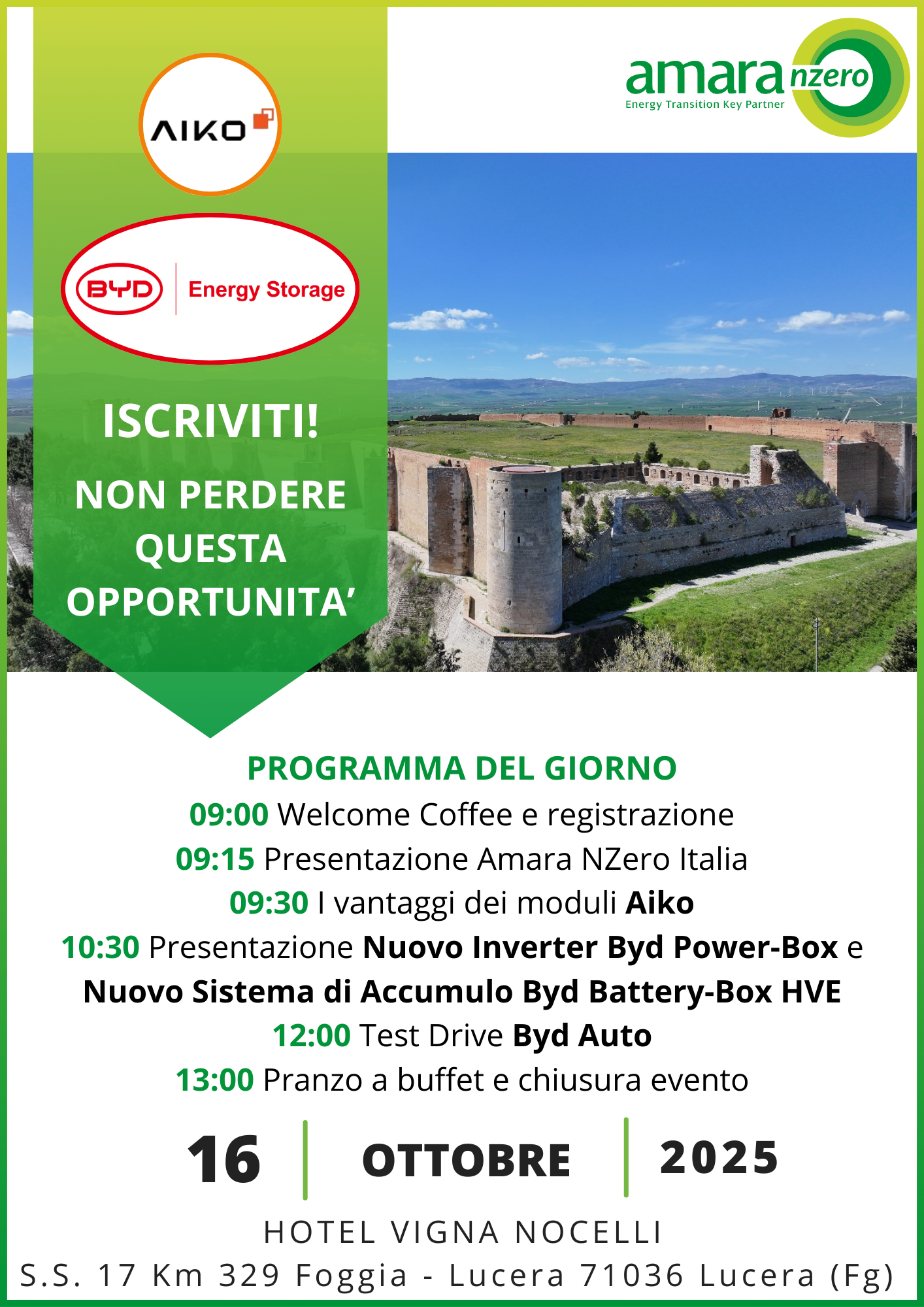 Partecipa anche tu al nostro prossimo Roadshow completamente GRATUITO che terremo in compagnia di AIKO e BYD a Lucera il prossimo 16 Ottobre 2025.