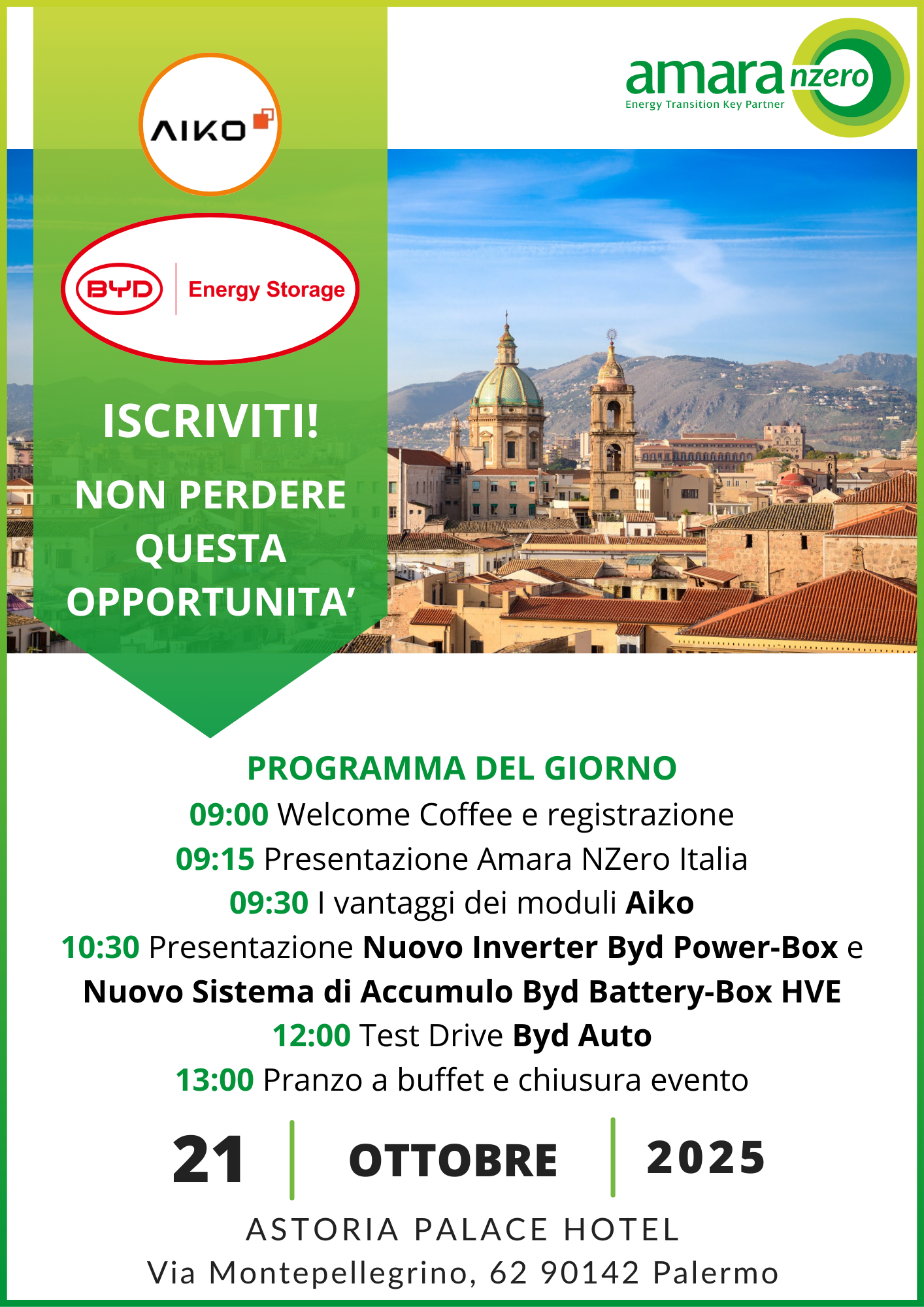 Partecipa anche tu al nostro prossimo Roadshow completamente GRATUITO che terremo in compagnia di AIKO e BYD a Palermo il prossimo 21 Ottobre 2025.