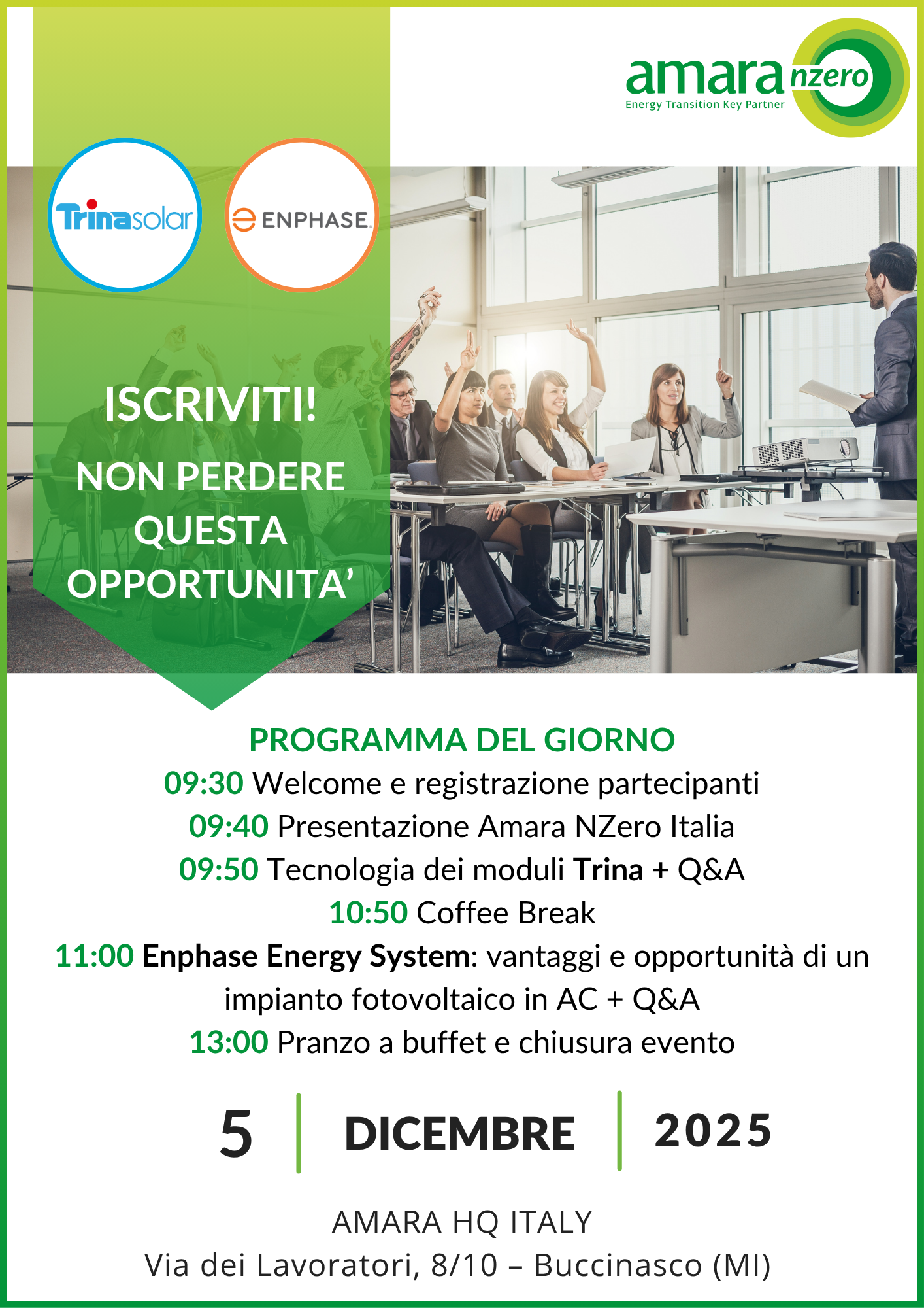 Partecipa anche tu al nostro prossimo Roadshow completamente GRATUITO che terremo in compagnia di ENPHASE e TRINA a Buccinasco il prossimo 05 Dicembre 2025.